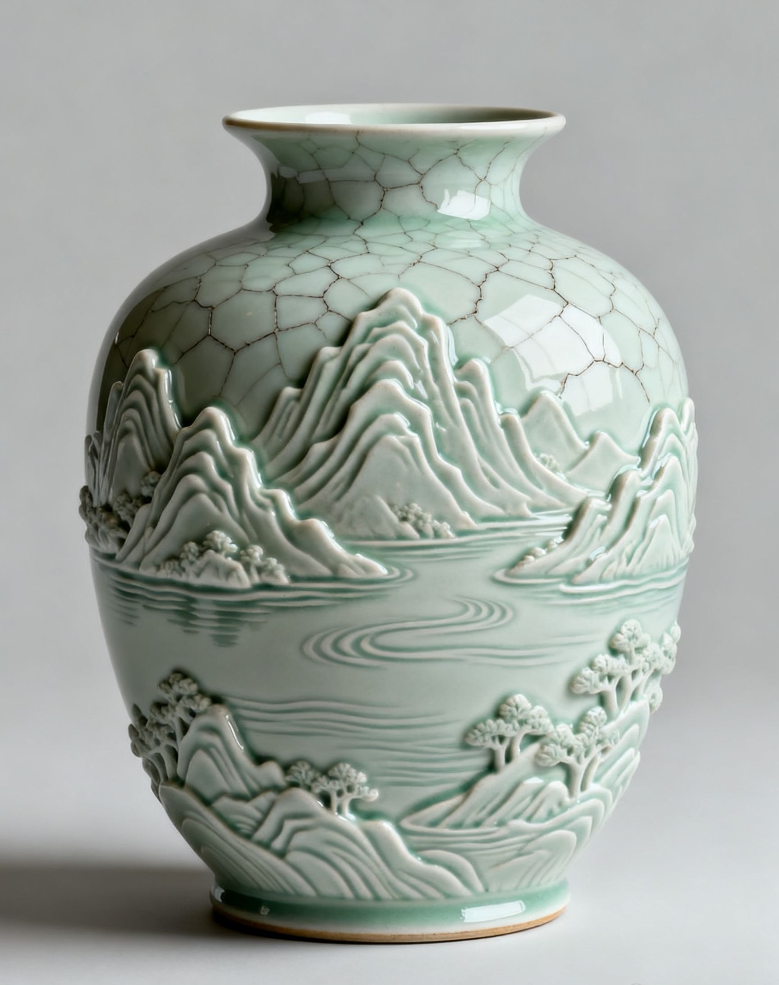 Song Dynasty artisans developed “stacked relief” where multiple clay layers create depth exceeding 2cm. The National Palace Museum’s “青白釉凸雕花卉纹尊” (Qingbai glazed relief vase) demonstrates how this technique mimicked bronze casting aesthetics in porcelain.